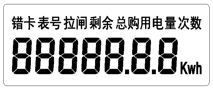●斷電報(bào)警:可以設(shè)置斷電報(bào)警值,當(dāng)用戶表內(nèi)剩余電量為斷電報(bào)警值時(shí),電表自動(dòng)斷電,報(bào)警燈點(diǎn)亮,并且液晶屏顯示“拉閘”(以提醒用戶及時(shí)購電),需要重新插一次用戶電卡才能繼續(xù)供電。