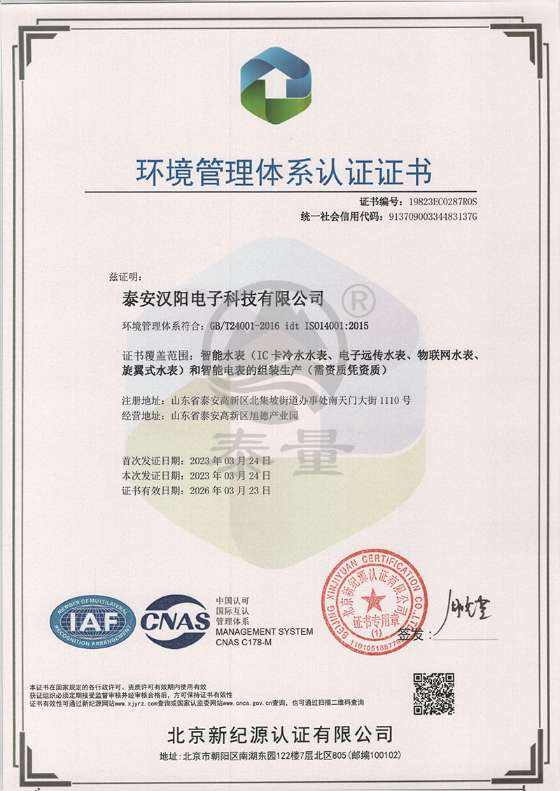 環(huán)境管理體系認(rèn)證證書(shū)
