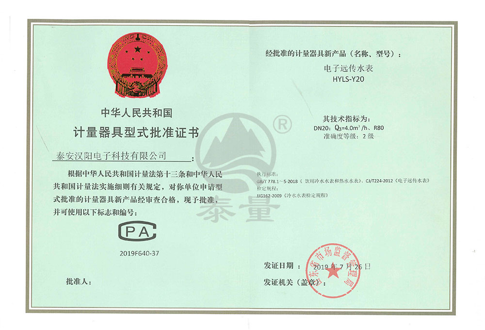 IC卡冷水水表型評證書