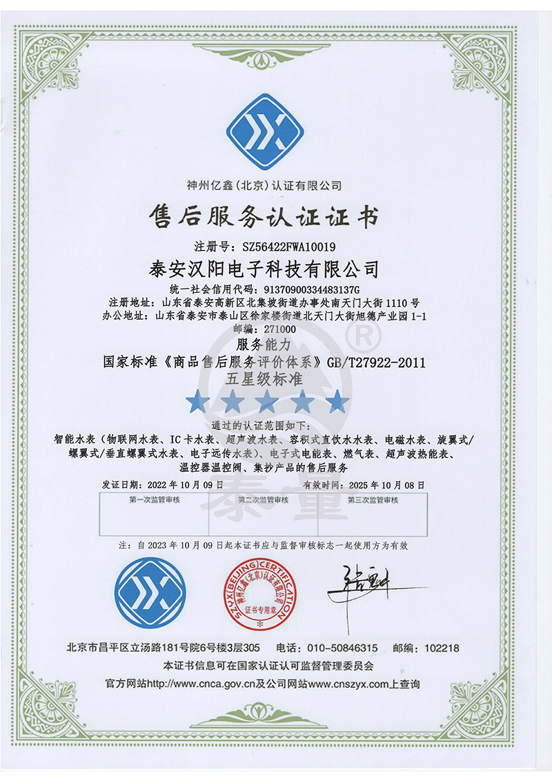 售后服務(wù)認(rèn)證證書