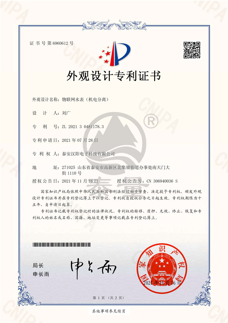 211017物聯(lián)網(wǎng)水表(機電分離) 證書